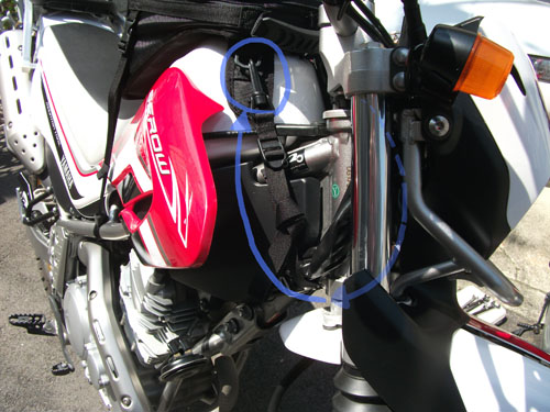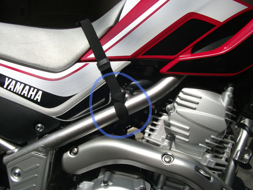 あと、この「セフティーベルト」、セロー250の場合長さが十分すぎて余るので
