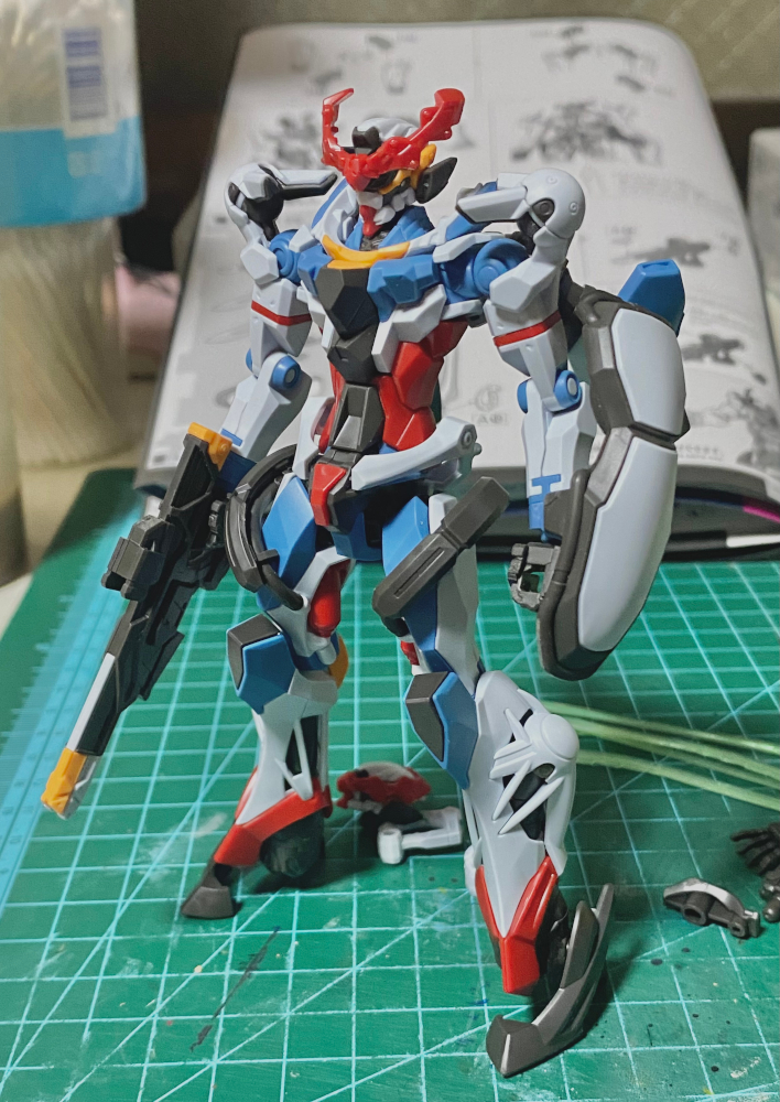 全塗装するつもりで仮組みしてたんですが、バックパックの後ハメ加工考えてたら面倒くさくなってきて一旦放置してます。