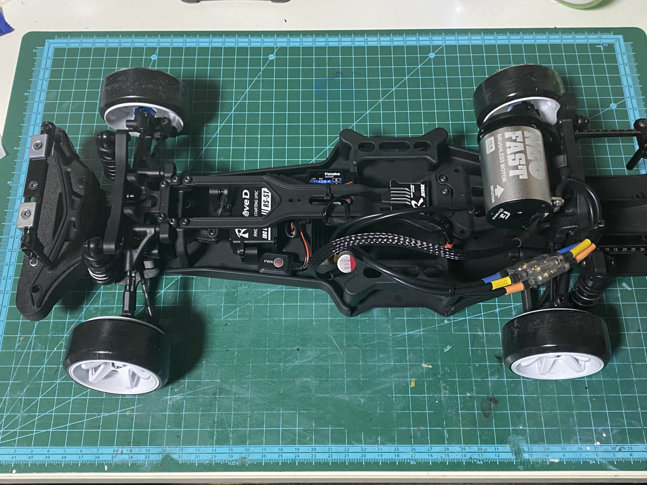 はじめはメカ類も安いやつで揃えてたんですが、サーボとジャイロは初心者でもそこそこ良いやつ載せたほうが良いっぽいです。ちょっと前にRaveDのやつに変えてそう感じました。