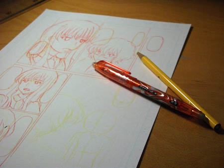 温めるとインクが無職ではなく無色になる性質があるので、こいつで下描きをしてペン入れ、そしてドライヤー等の熱で一気に下描きを消そうということです。